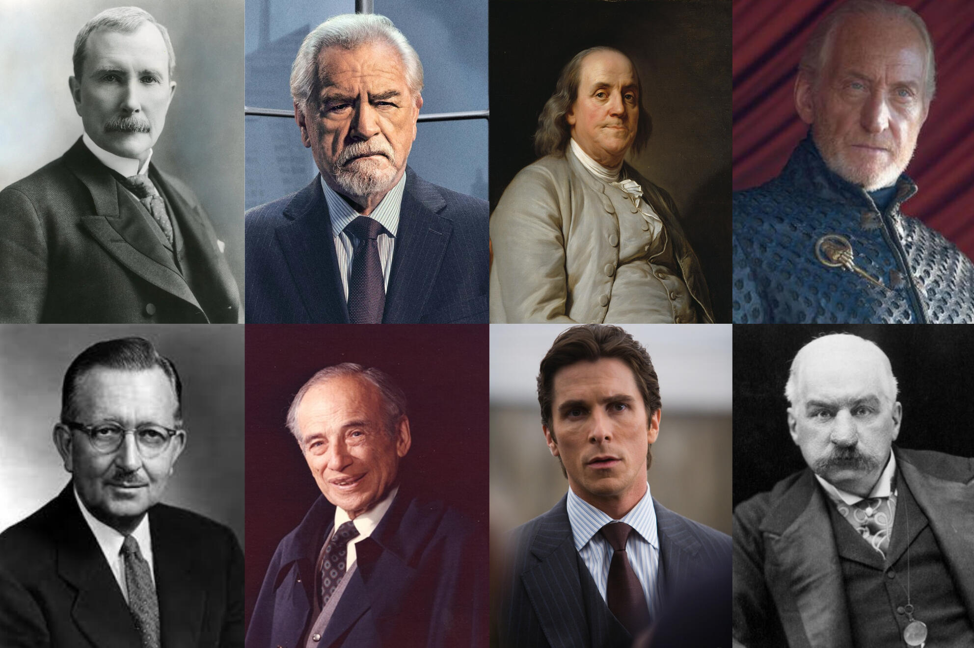 You can choose John D. Rockefeller, Thomas Rowe Price Jr., J.P. Morgan, Benjamin Graham, Ben Franklin, Logan Roy (Succession), Bruce Wayne (Batman), and Tywin Lannister (Game of Thrones). Each has their own investment strategy and personality.